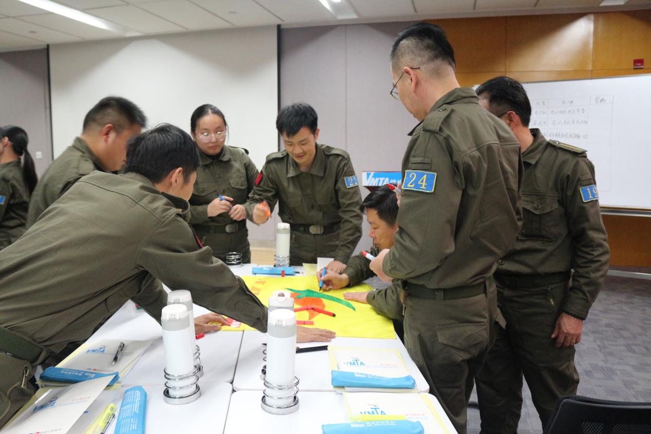 我們在校的三天,教官給我們安排了團隊活動,意在鍛煉我們的團隊協作能力,從“翻紙牌”、“制作隊旗”、“積木移運”到“乒乓球運輸”這四個活動中,大家都能體會到團體的重要性,缺一不可,只要我們的團隊在完成目標時沒有提前計劃并有效實施里,我們的結果都會不同。只有有計劃、有方向、有目標朝著同一個目標前進,才能有效的完成任務。