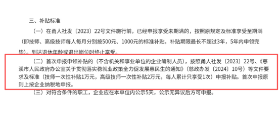 證書到手后,公司行政部門第一時間行動起來。依據(jù)寧波市人力資源和社會保障局關(guān)于提升人才技能補貼的相關(guān)要求,以及《慈溪市人民政府辦公室關(guān)于貫徹落實穩(wěn)就業(yè)政策全力促發(fā)展惠民生的通知》(慈政辦發(fā)〔2024〕10號)文件中明確的標準——技師可享受1萬元一次性補貼、高級技師可享受2萬元一次性補貼,行政同事積極協(xié)助何保國整理申請材料,精準核對文件要求,高效完成了補貼申請的遞交工作。