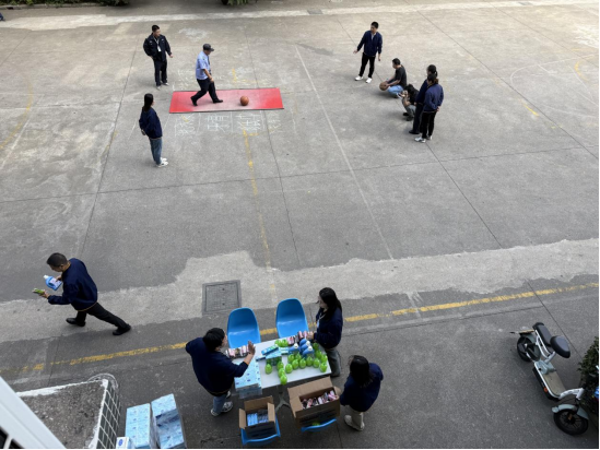 “活動現場早已布置妥當,地面上用彩色粉筆清晰劃分出不同的禮品兌換區,洗衣液、洗手液、牙膏等實用好物靜靜“待命”,等待著幸運主人的認領。每人兩次發球機會,命中次數直接對應禮品等級,就算一次未中也能收獲參與獎,這樣的“暖心規則”讓每個人都毫無壓力,盡情投入。