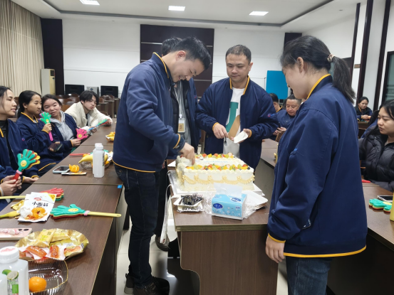 主管與人力資源部的小伙伴們化身“幸福傳遞官”,小心翼翼地為每一位壽星分發蛋糕,甜糯的口感在舌尖化開,正如這份來自大家庭的溫暖,浸潤心田。何主任也為壽星們送上了最真摯的祝福,話語間滿是對大家辛勤付出的肯定與未來的期許,讓在場的每一個人都倍感溫暖。